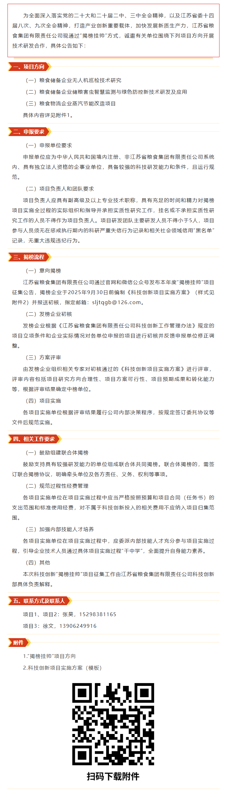 江蘇省糧食集團(tuán)有限責(zé)任公司科技創(chuàng)新“揭榜掛帥”項(xiàng)目征集公告